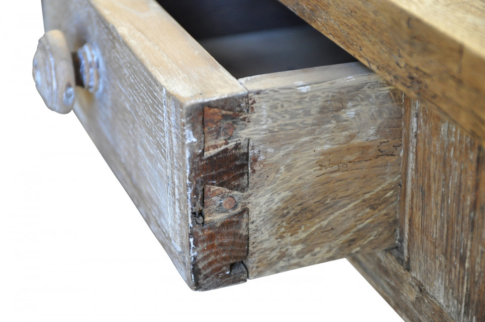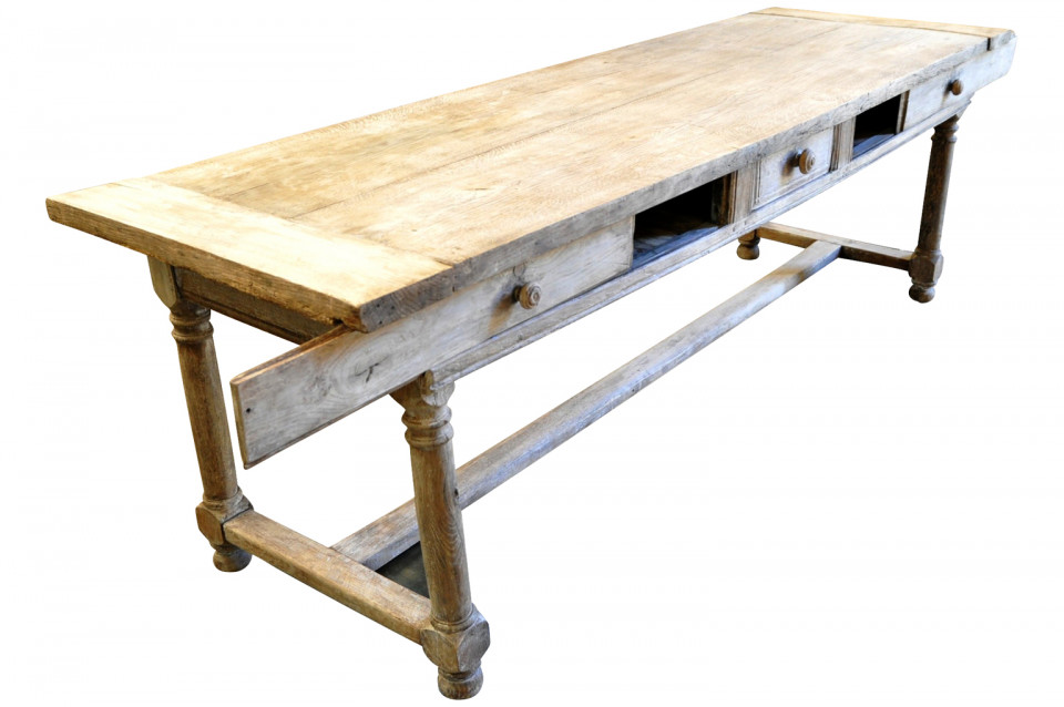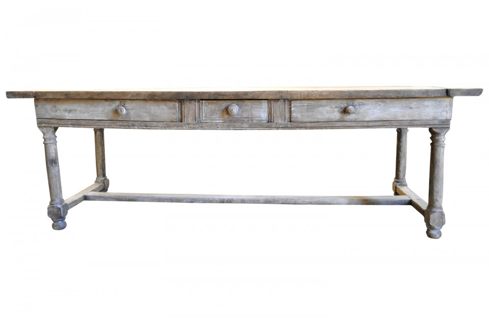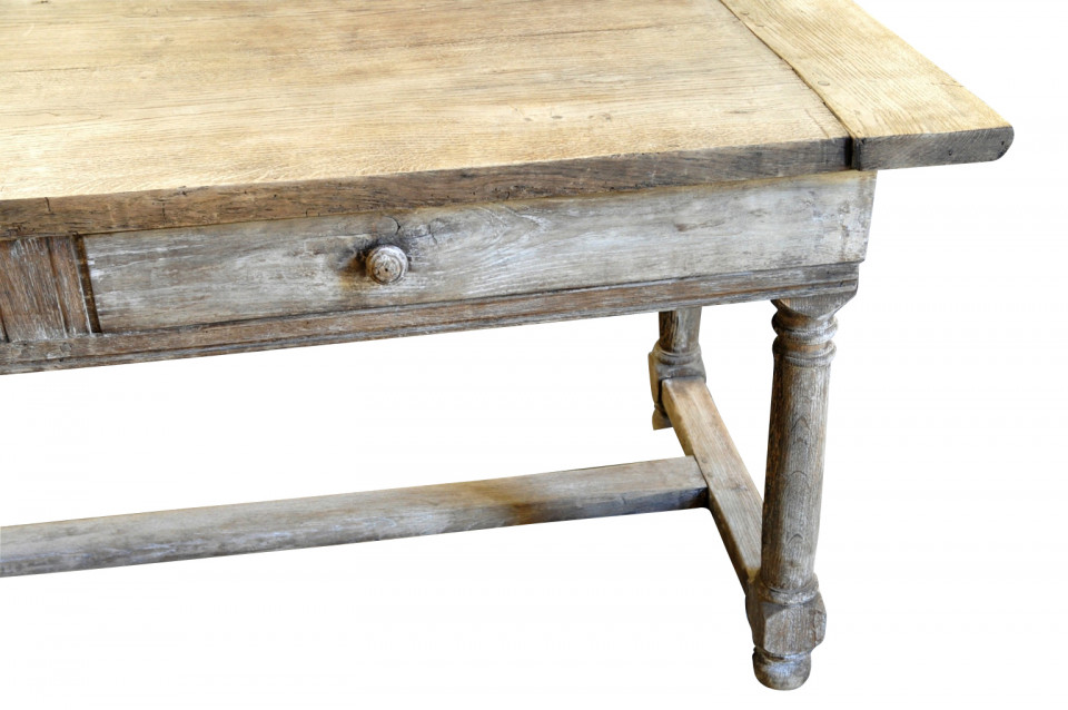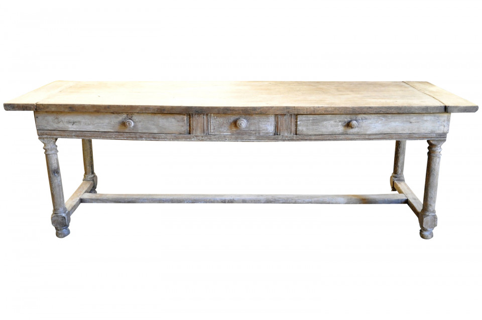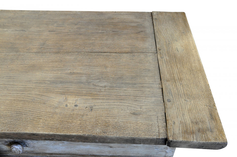 A very handsome mid-19th century console table from the Provence region of France. Wonderfully crafted from washed or bleached oak with two sliding panels and a drawer.