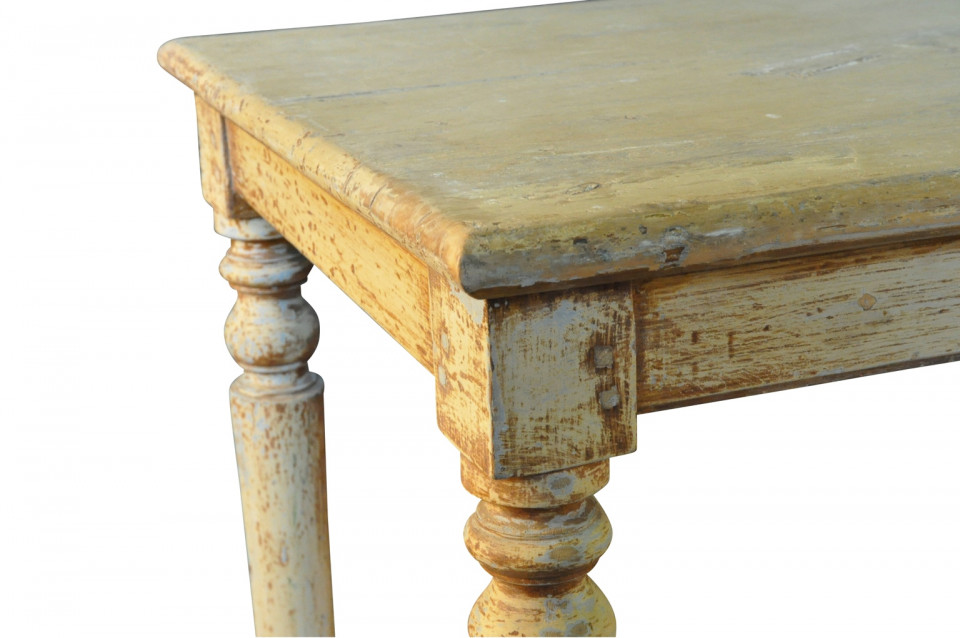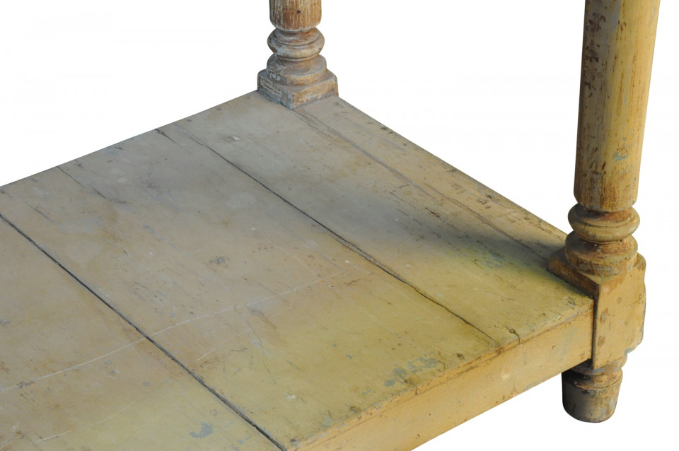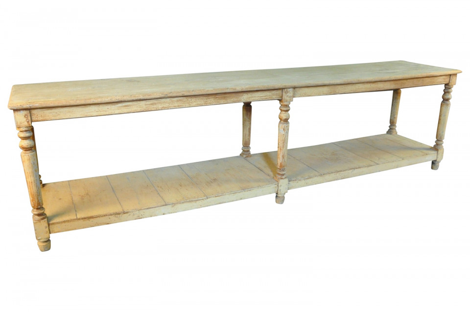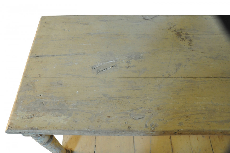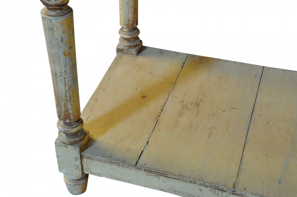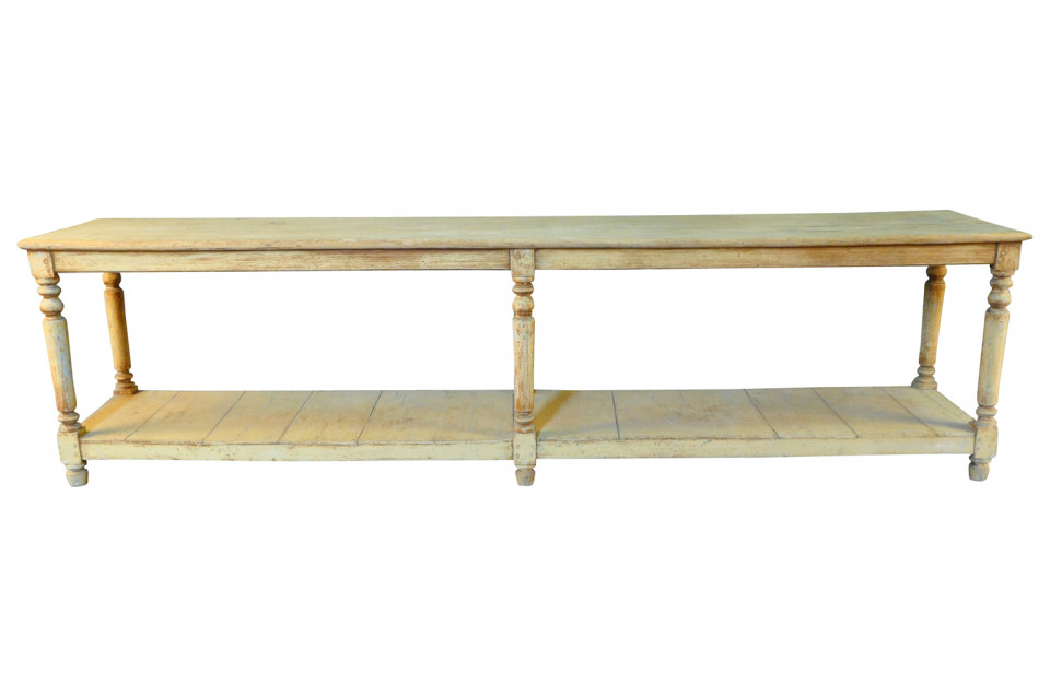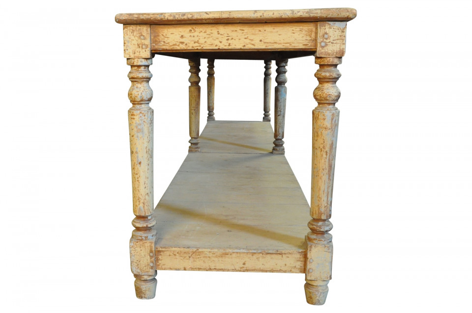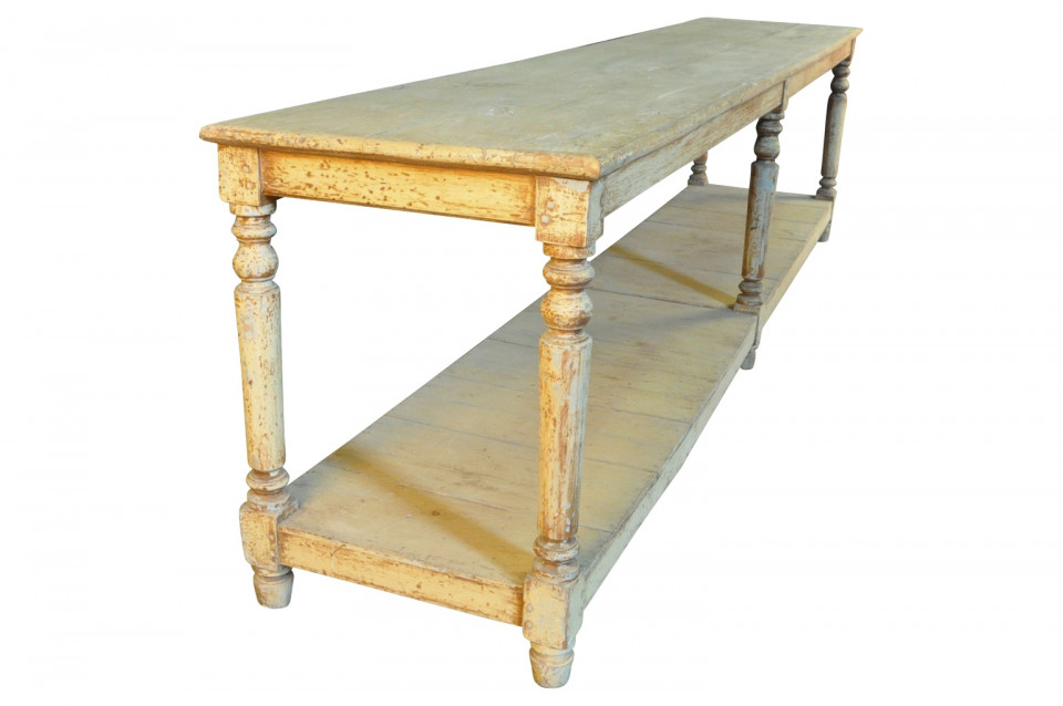 A very lovely later 19th century Draper's Table from the South of France. Soundly constructed from painted wood with beautifully turned legs and a base shelf. Serves wonderfully as a console table, room divider or serving piece. Terrific patina.