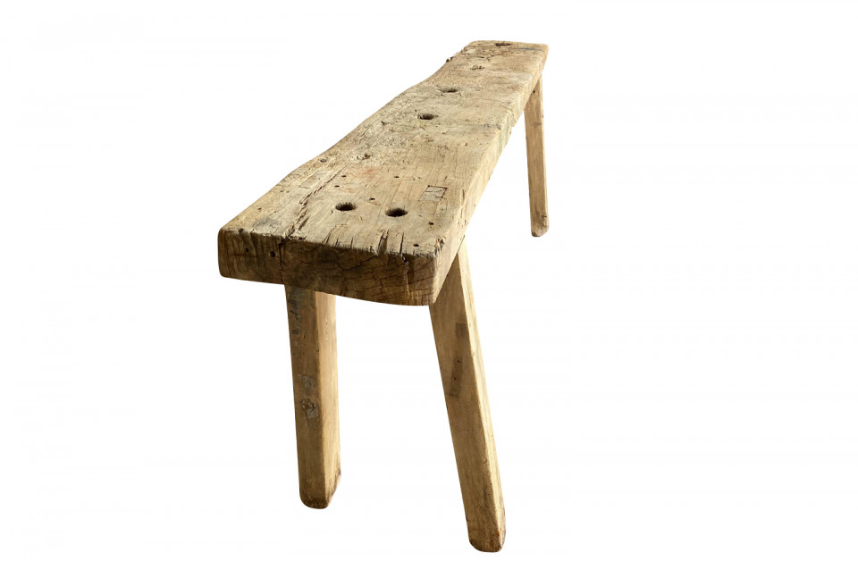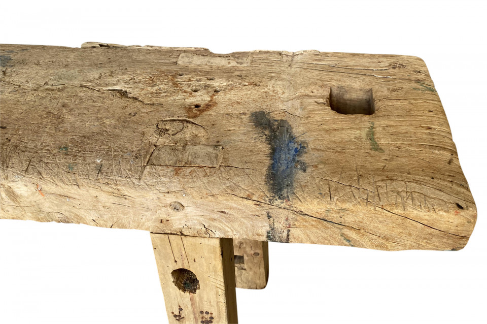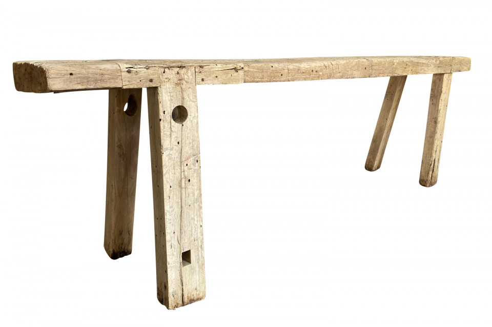 A charming and primitive 19th century Etabli - Work Bench from the Catalan region of Spain. A terrific console table for any rustic environment. Arriving May 2021.