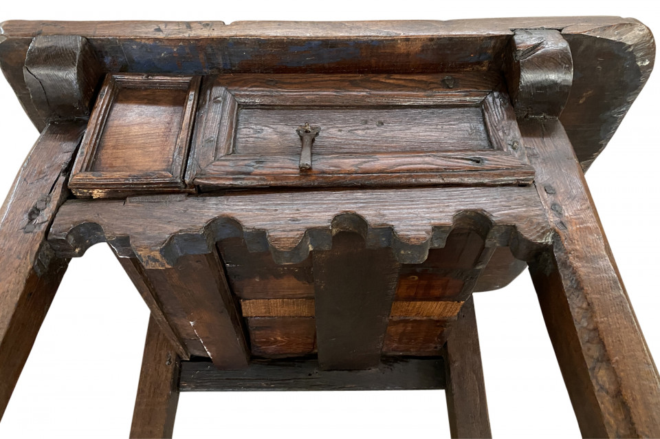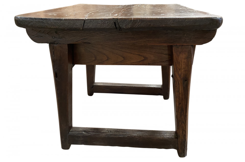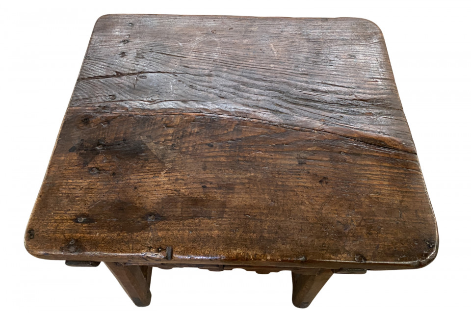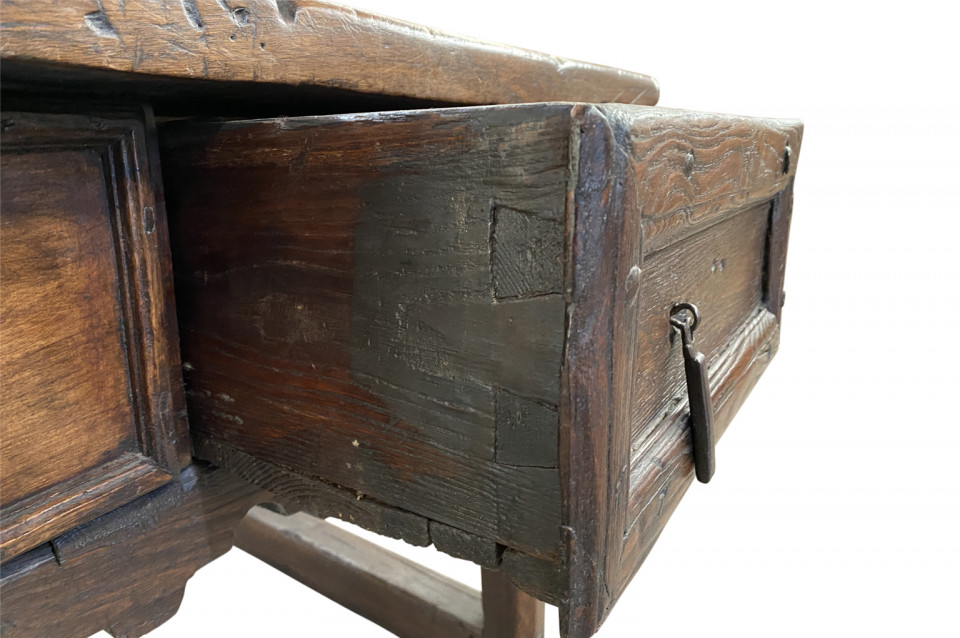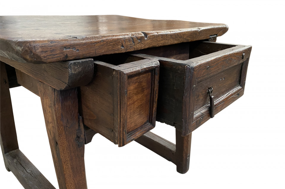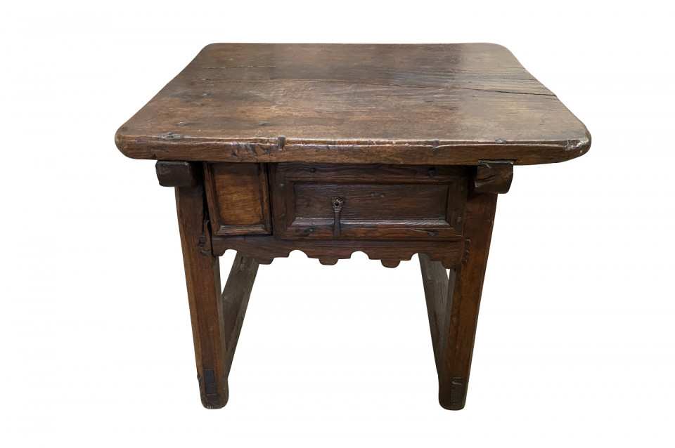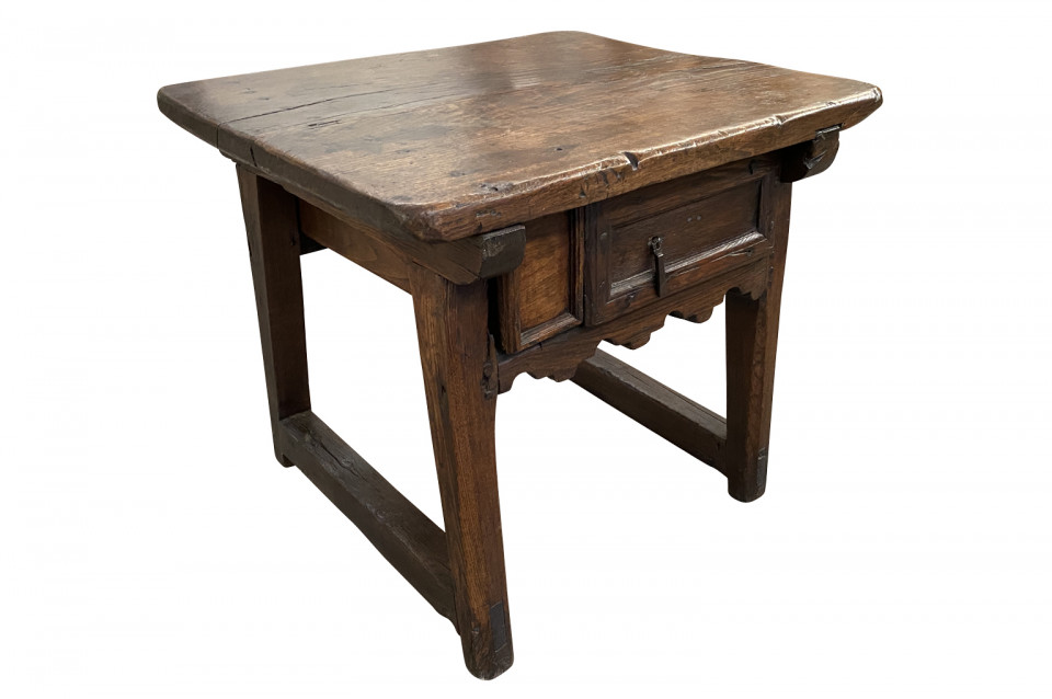 A very handsome and charming 18th century side table from the Catalan region of Spain. Soundly constructed from chestnut and pine with 2 drawers and a scalloped apron. Wonderful patina - warm and luminous. Arriving May 2021.