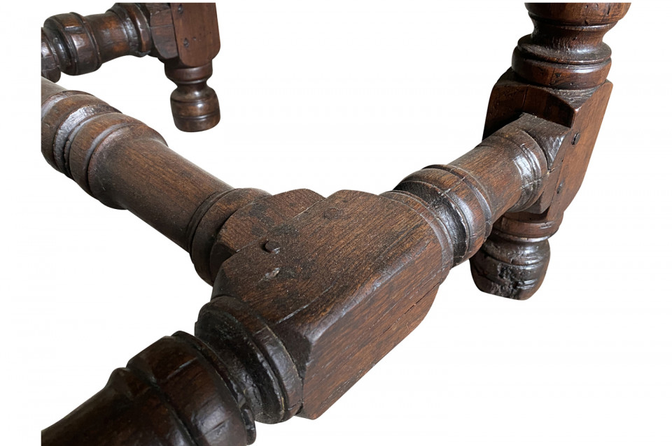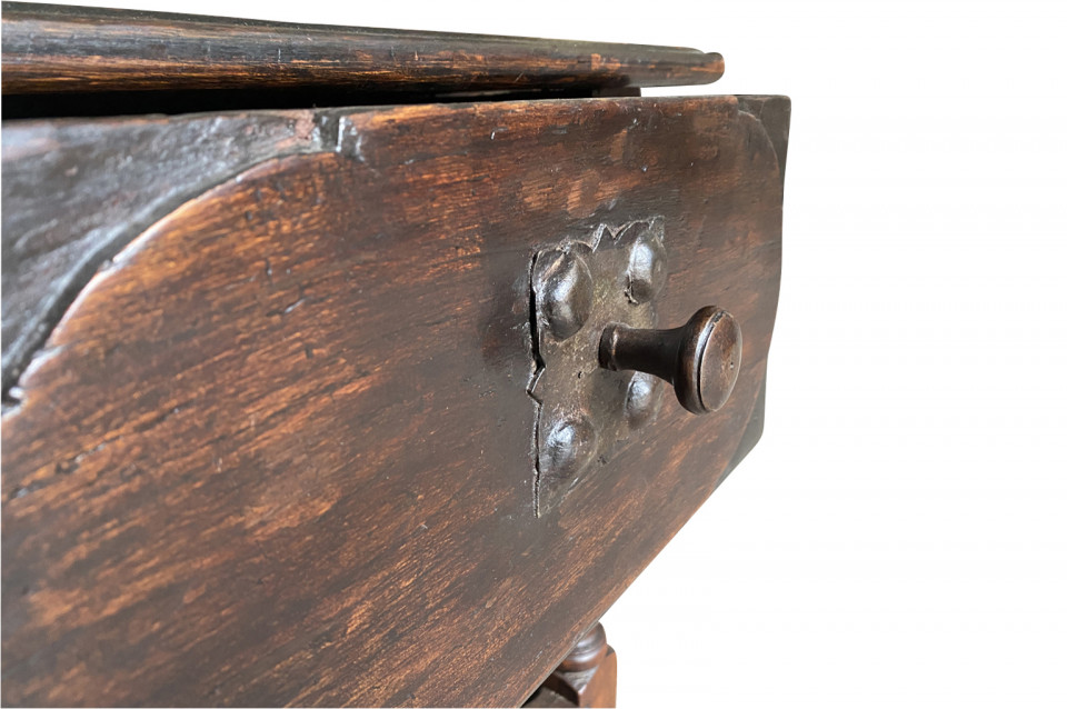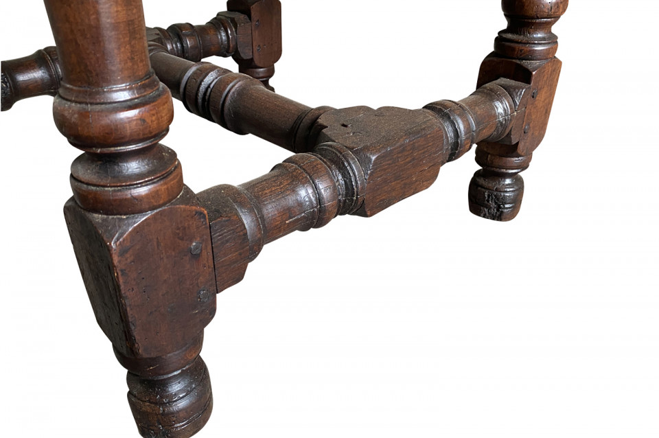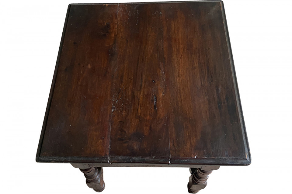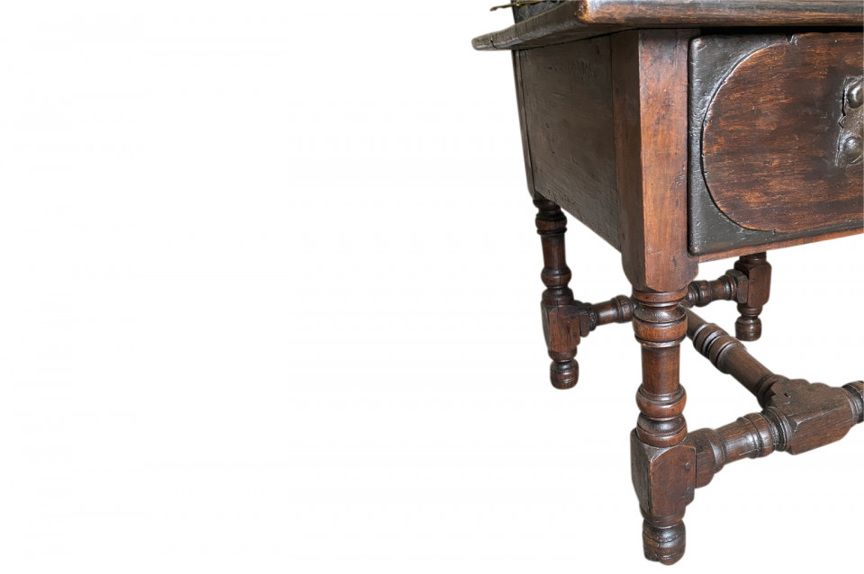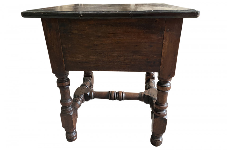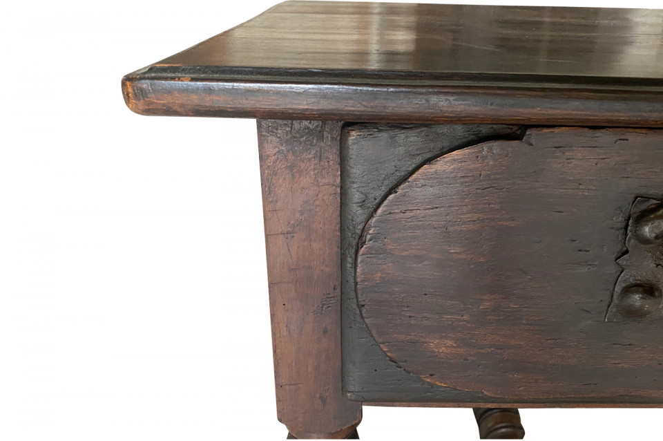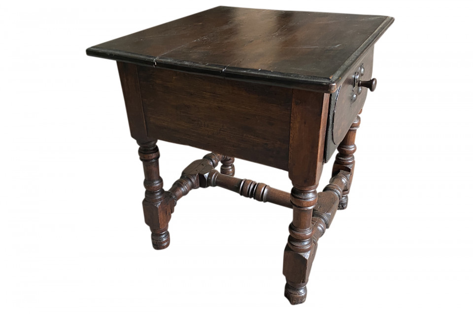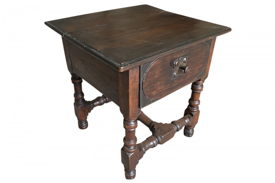 A very charming 18th century Arte Populaire side tale from the Ardeche region of France. Soundly constructed from beautiful walnut and oak with a single drawer and nicely turned legs.