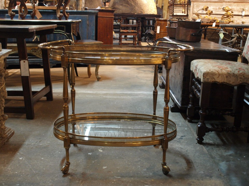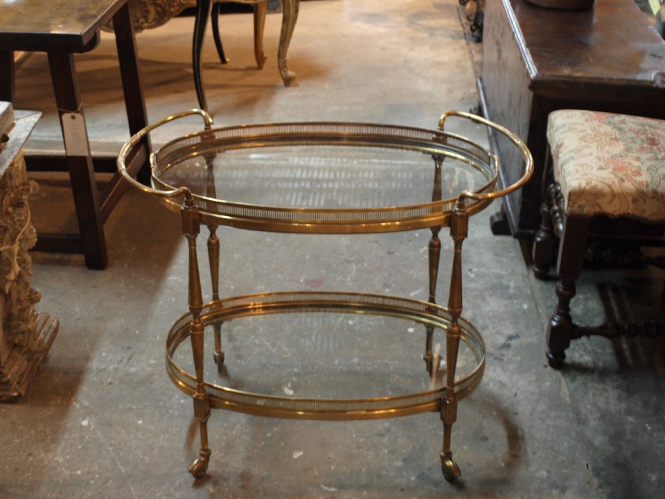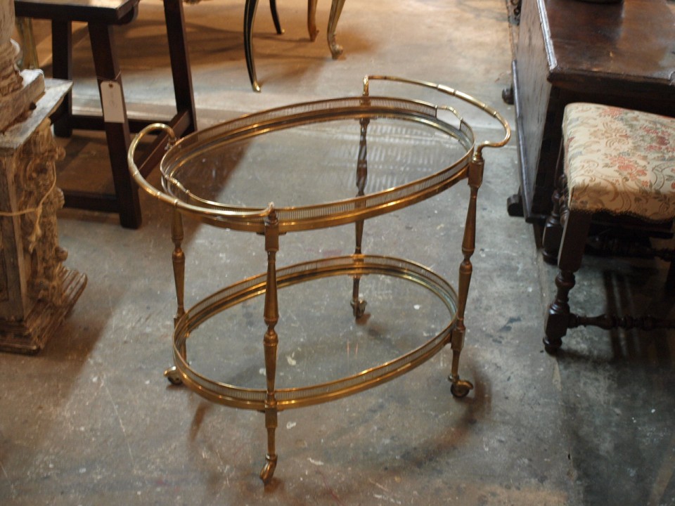 Italian Brass And Glass Cocktail Cart Or Dry Bar Cart