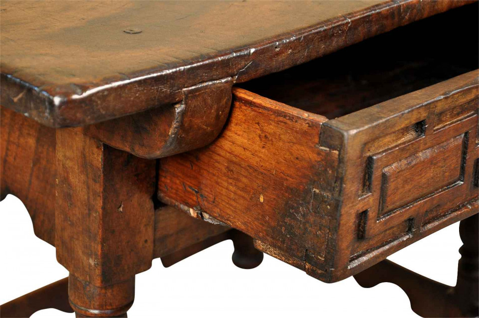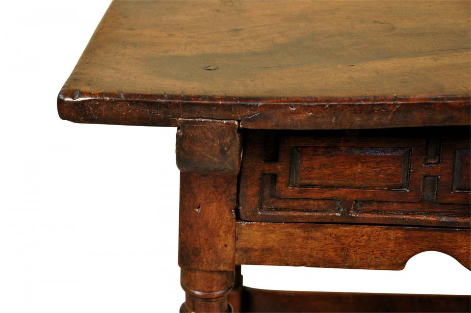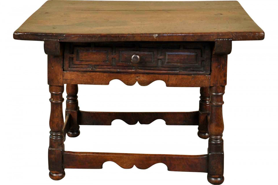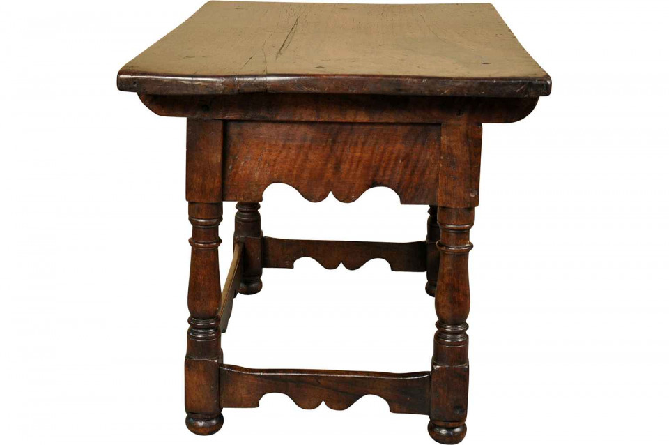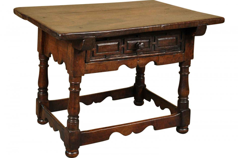 A charming early 19th century side table constructed from walnut with a single drawer. Wonderful patina. Will serve nicely as a charming cocktail table. ARRIVING MID-MARCH!!!