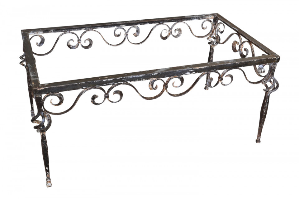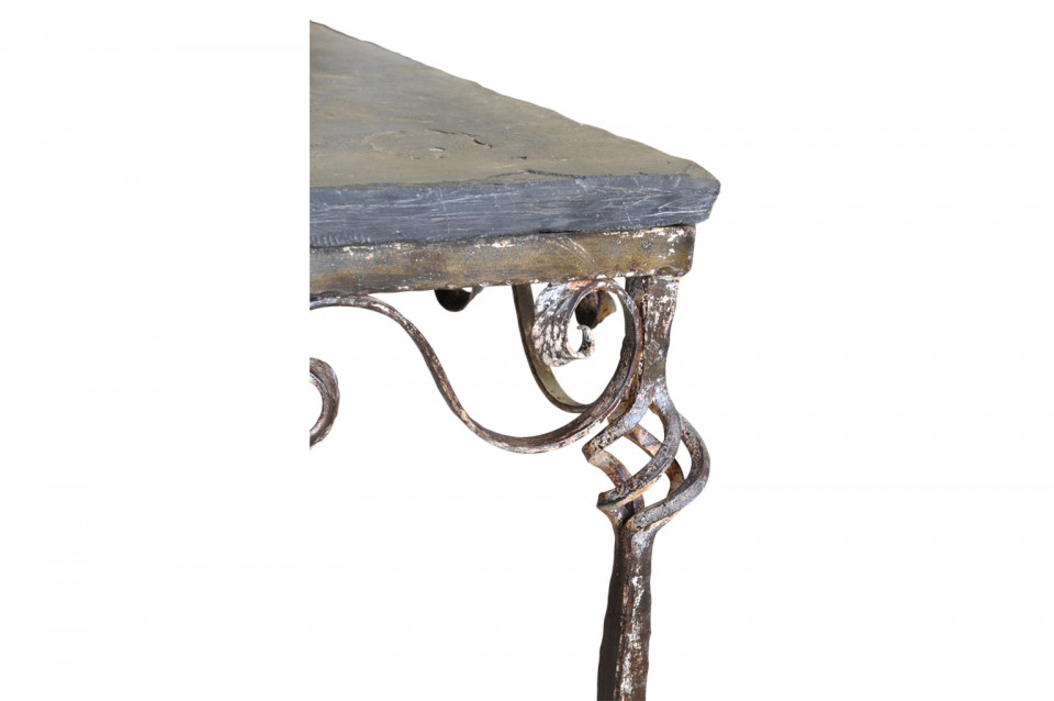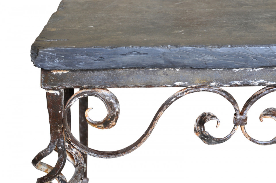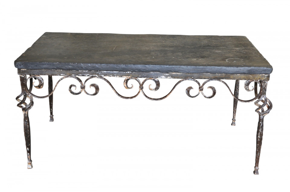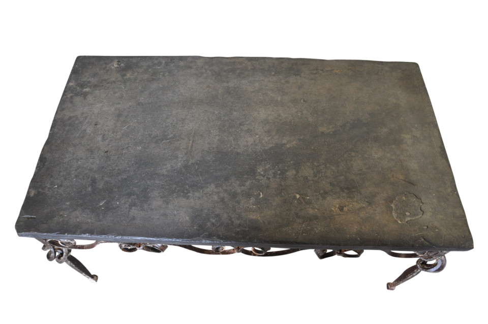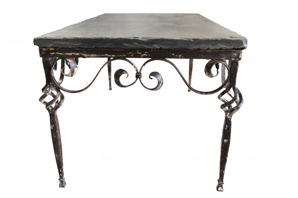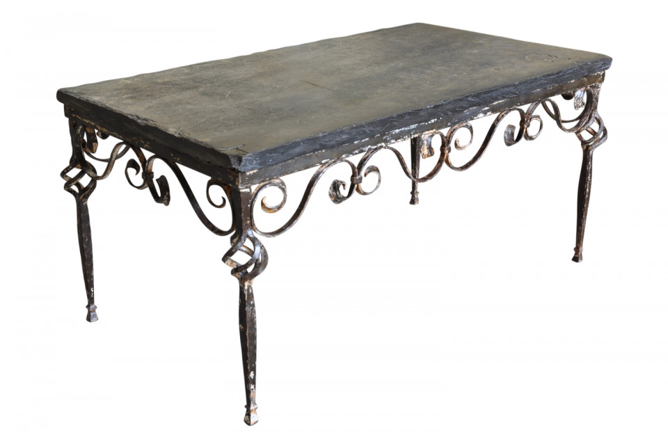 A terrific early 20th century coffee table - table basse from Spain. Wonderfully constructed with an iron base and slate top. Perfect for the interior or as a garden table.
