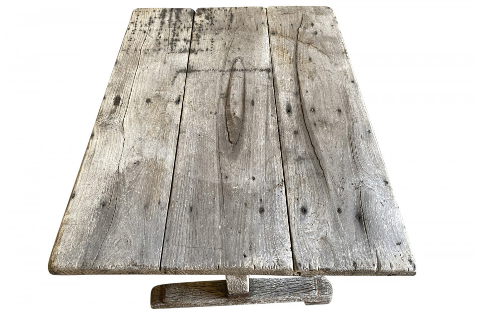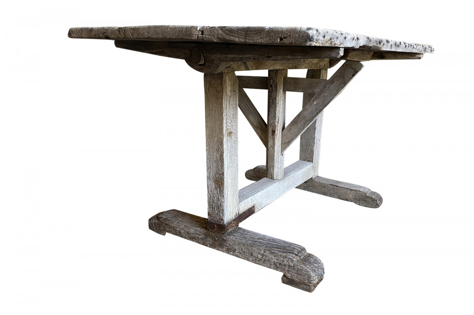A very charming primitive mid-19th century Table Vigneron - Wine Tasting Table from the South of France. Soundly constructed from naturally washed wood. A wonderful table for an interior, garden or porch.
