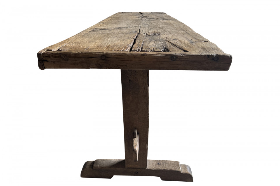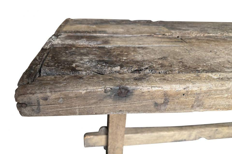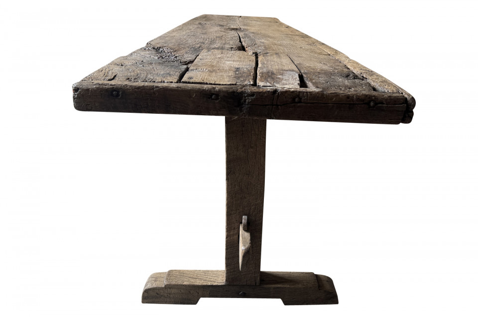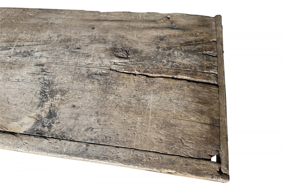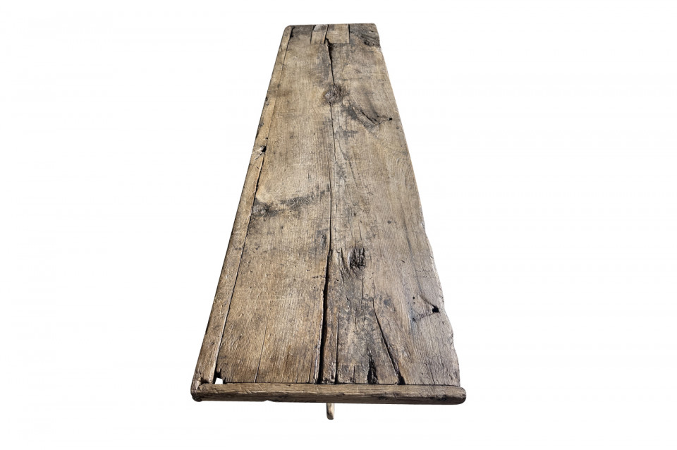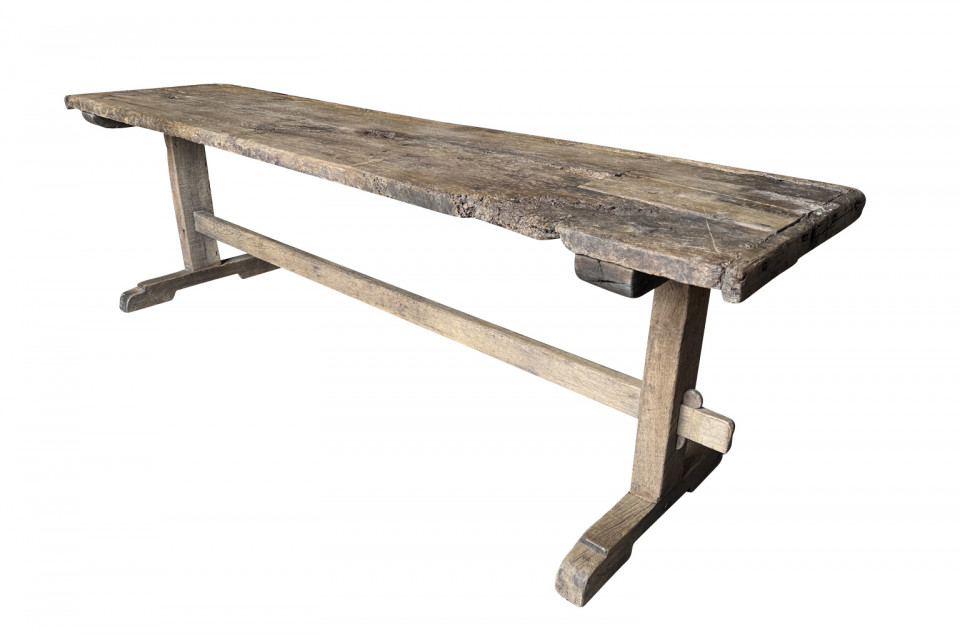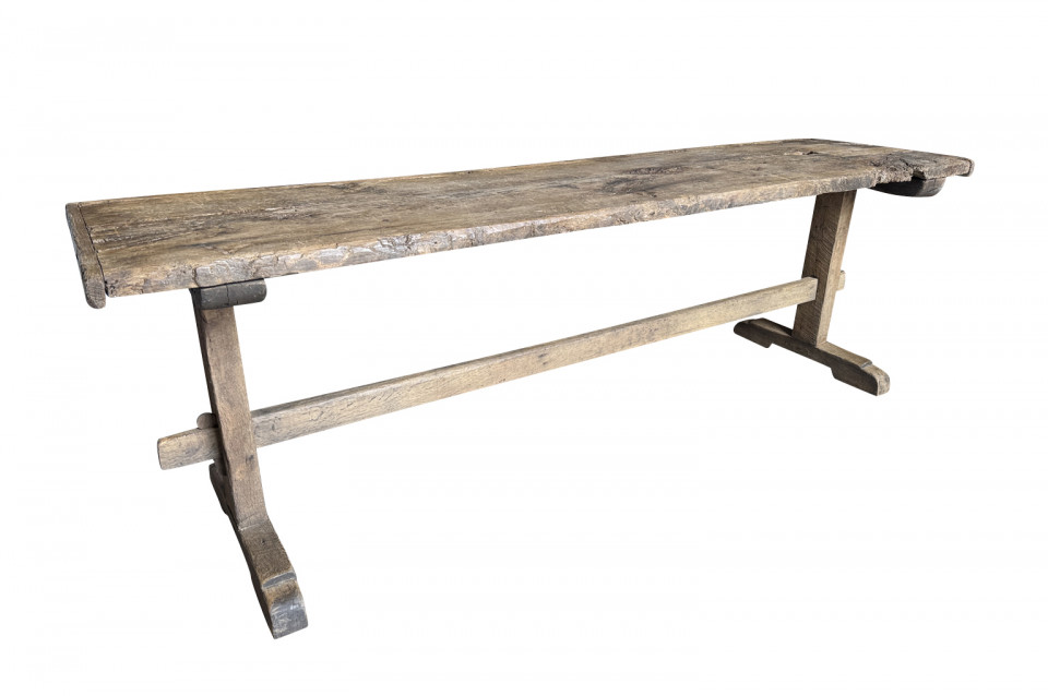 A very handsome 18th century primitive console table from the Catalan region of Spain. Soundly constructed from naturally washed oak and pine. Beautiful patina. Perfect placed underneath art or a flat screen television.