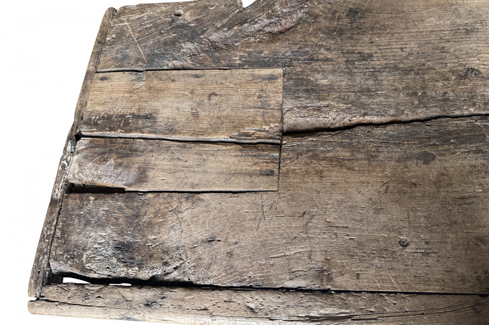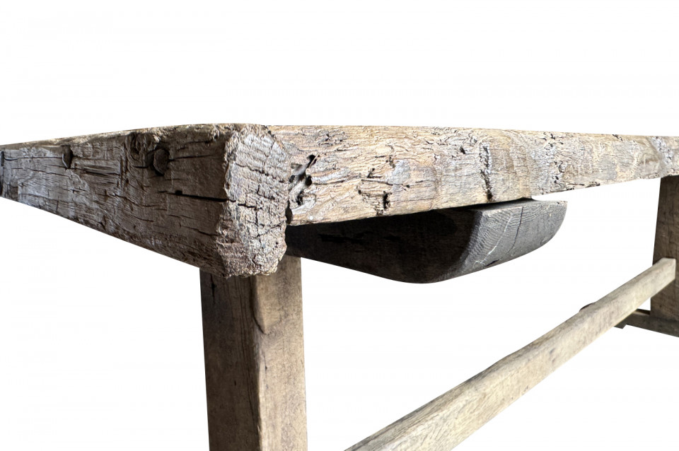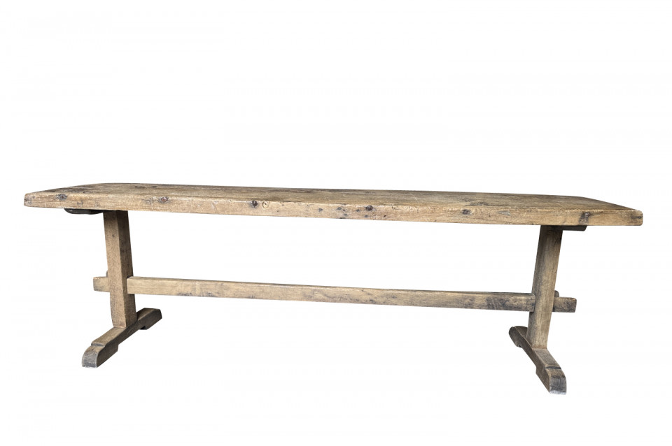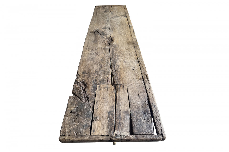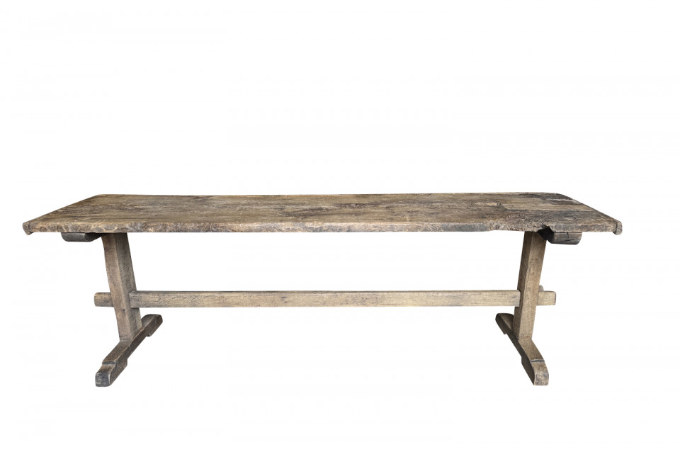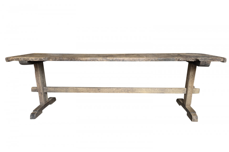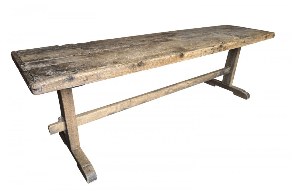 A very handsome 18th century primitive console table from the Catalan region of Spain. Soundly constructed from naturally washed oak and pine. Beautiful patina. Perfect placed underneath art or a flat screen television.