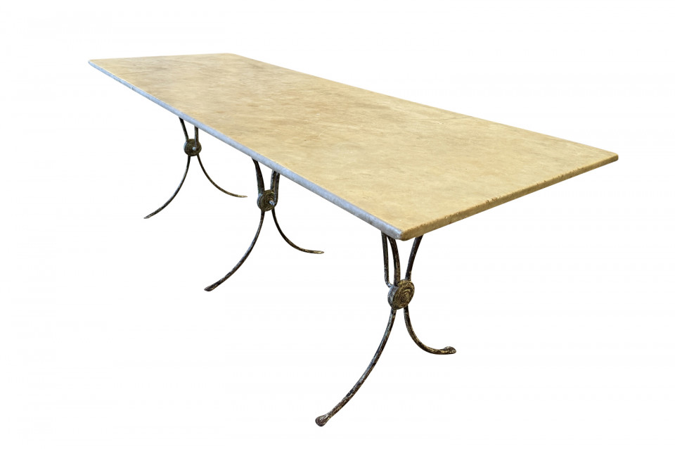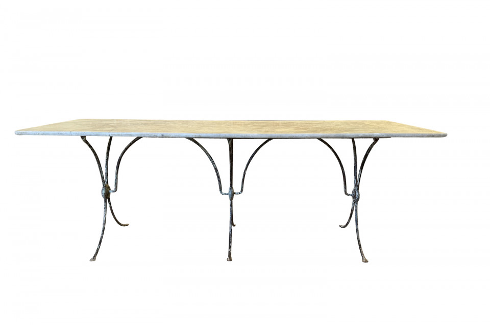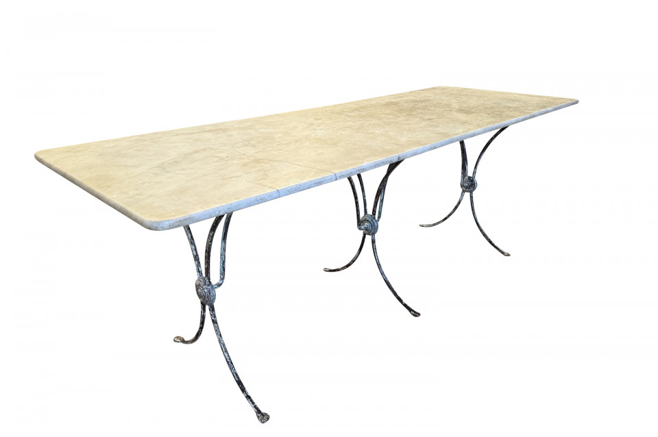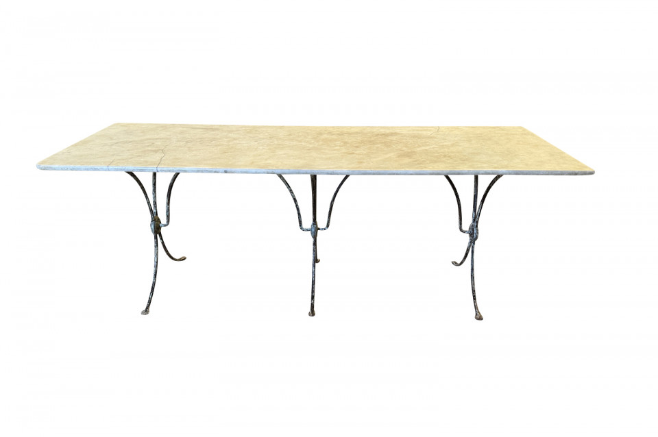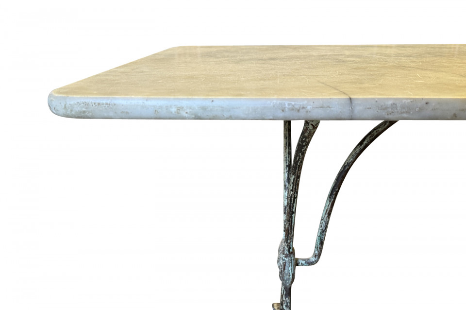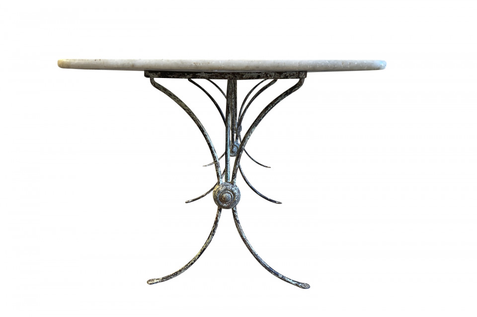 A wonderful 19th century Garden Table from the Provence region of France. Nicely constructed from a sound painted iron base with its original marble top. Perfect as a console or dining table.