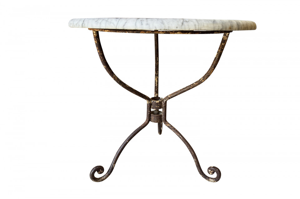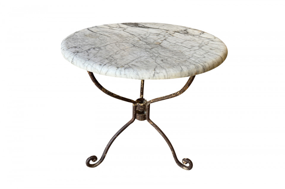 A very lovely early 19th century Garden Gueridon from the Provence region of France. Beautifully crafted with a handsome hand forged iron base and its original thick marble top. Perfect for any interior or garden. Sensational patina.