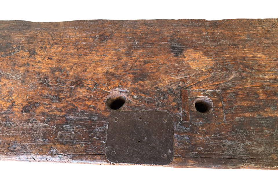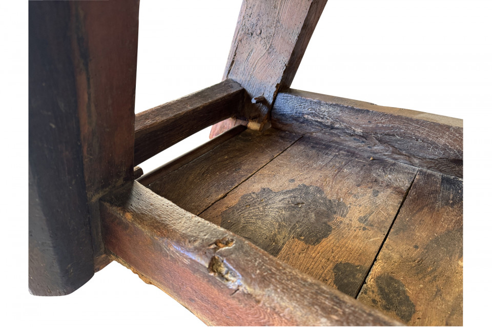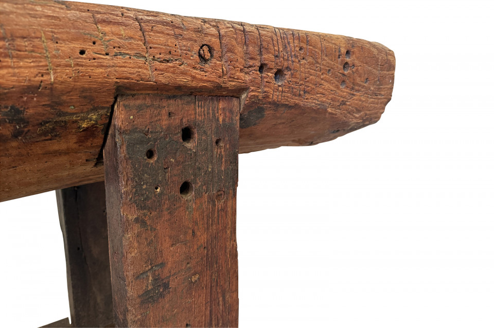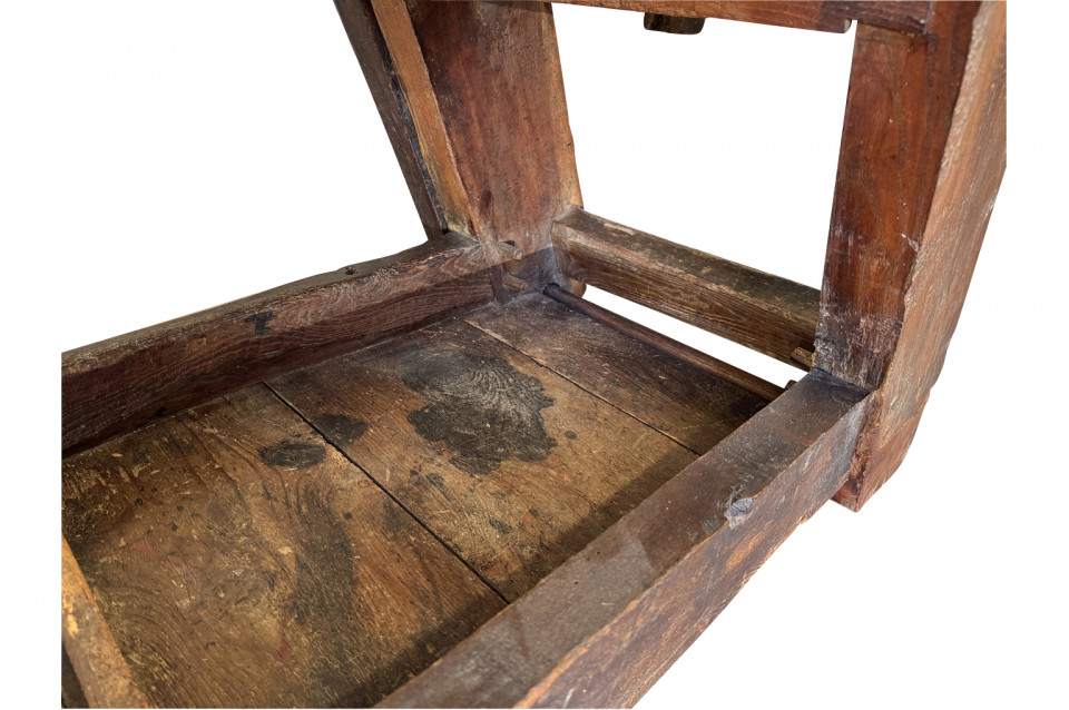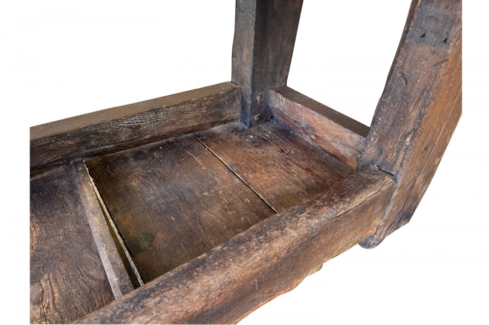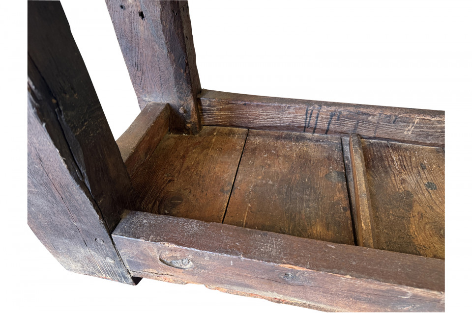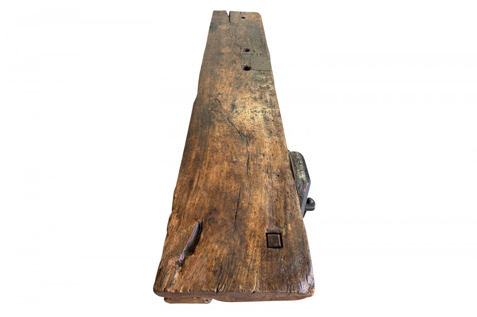 An outstanding and truly exceptional French early 19th century Etabli - Work Bench from the Ardeche region of France. Wonderfully constructed from handsome chestnut with a very thick work surface, impressive vice and lower shelf. Sensational patina. A perfect console table for rustic or contemporary surrounding.